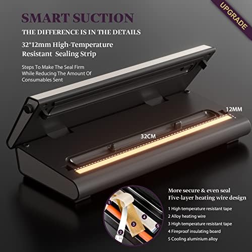 【12mm Widened Heating Strip】It’s designed to widen the heating strip up to 12mm with strengthen sealing material, ensuring much more tight, durable and steady sealing effect. 5-layer heating wire design offers more secure and even seal.