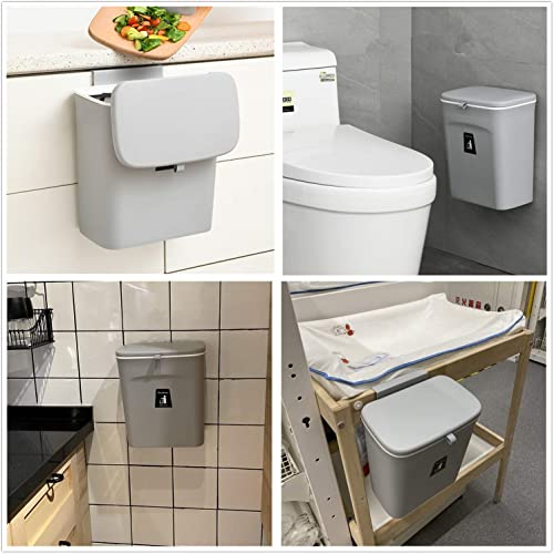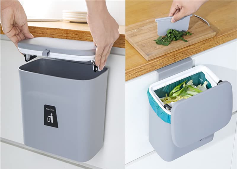 Dimension: 10.2 * 6.3 * 11.6inch, Capacity: 2.4 gallon; Trash bin is easy to install hanging, mount accessory ( 1 hook, 1 adhesive hooks ) included.