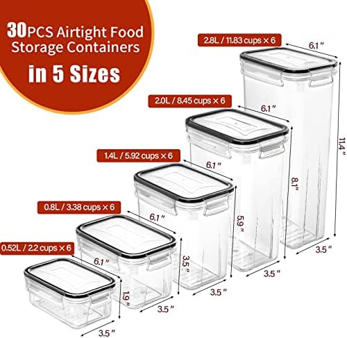 PRAKI 30 Pack Airtight Food Storage Containers for Kitchen Pantry Organizers