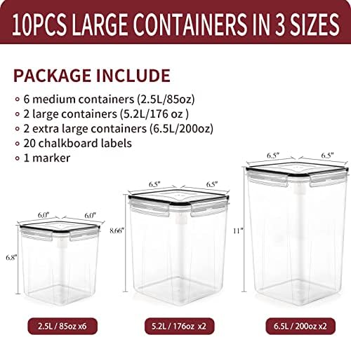 Just the Right Containers— The flour and sugar containers set included 2pcs EXTRA LARGE size 6.5L/220oz, 2pcs LARGE size 5.2L/176oz and 6pcs MEDIUM size. Extra gift( White pen + 20pcs Blackboard labels), which is very suitable for storing daily food.