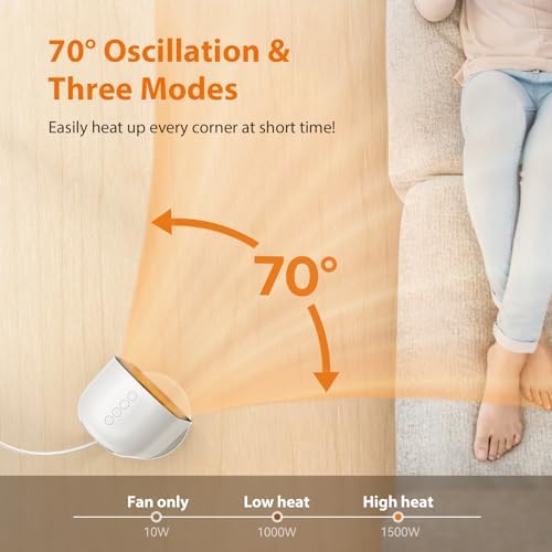 🔥Fortified safety Function: Stay warm and secure with Ilake heaters! Made of V0 flame-retardant materials with multiple protections: tip-over & overheat protection. With 30s auto stop heating and cool down once knocked down. The self-contained, self-regulating ceramic heating element ensures that the exterior housing remains cool to the touch, making it a secure option for both chilly days and nights. Rest assured with Ilake’s commitment to safety.