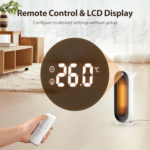 🔥Effortless Convenience: Immerse yourself in ultimate comfort with our electric heater. Its clear digital readout makes monitoring the room temperature a breeze. You can set the timer for up to 12 hours, ensuring personalized heating at your convenience. Say goodbye to frequent trips from the cozy sofa with the included remote control. Access all functions easily through the touch button on the top of the heater, providing seamless operation. (Please note: Batteries are not included).