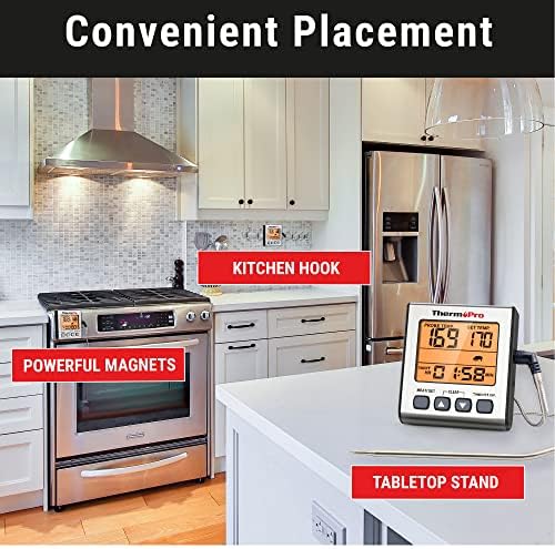 Multiple storage options: Easily store away this digital probe thermometer using its Built-In Magnet and Stand; Hanging Mount lets you store this oven thermometer from a hook