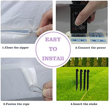 Setup Tips 🎃① Before plugging your inflatable into an electrical outlet, please make sure zipper is closed.② Insert the stakes into the ground and attach the ropes. ③ Please do not inflate during strong winds, raining and snowing day, protect fan and motor from water.