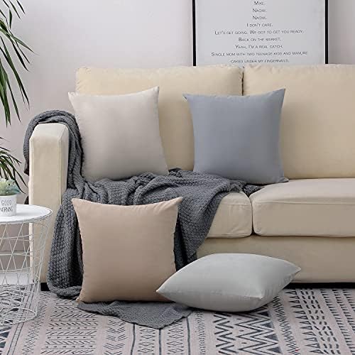 WEMEON Neutral Throw Pillow Covers 18×18 Inch Set of 4,Modern Solid Color Square