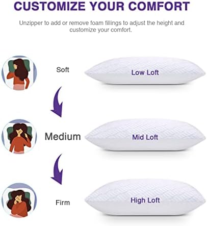 Customize Your Comfort: taking everyone`s special sleep habits in account, Wishsmile shredded foam pillows are made to be adjustable and moldable,it allows you to control the height and firmness.With convenient zipper on the edge, it takes no efforts to add or remove foam fillings to adjust the height and customize your comfort to your preference.